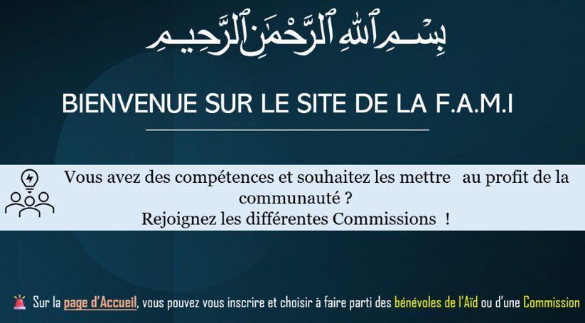 Découvrez très prochainement nos projets, nos articles, nos commissions (que vous pouvez déja rejoindre en remplissant les formulaires ci-dessous) , notre agenda de cours et dourouss et toute actualité relative à la FAMI...